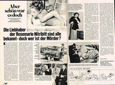 Rosemarie Nitribitt Nude 15 pics Country of birth: Germany Place of birth: Düsseldorf Date of birth: February 1, 1933 Wikipedia Celebs from Germany Catrina Stemmer Sigrid Göhler Fritzi Eichhorn Claudia Stanislau Lea Fassbender Lilia Lehner Photos of Rosemarie Nitribitt